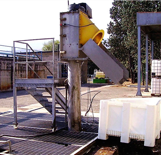 Das Abwasser gelangt durch einen seitlich angeflanschten Einlaufkasten in die vertikale Siebschnecke. Das sonstige Funktionsprinzip ist das gleiche wie bei Siebschnecken PSC/PSCC, mit dem Unterschied, dass die Siebschnecke vertikal aufgestellt wird.