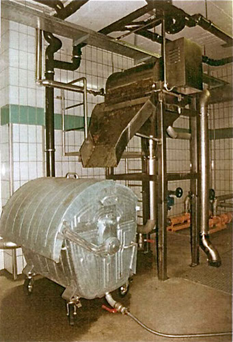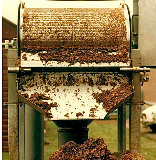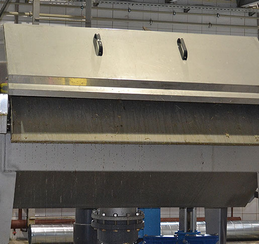 Ein innerhalb der Siebtrommel befindliches Sprührohr mit Düsen reinigt im Bedarfsfall die Siebfläche.