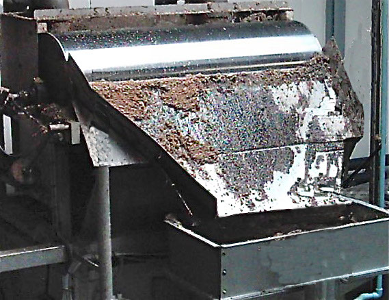 If necessary, a spray pipe with nozzles located inside the screen drum cleans the screen surface.